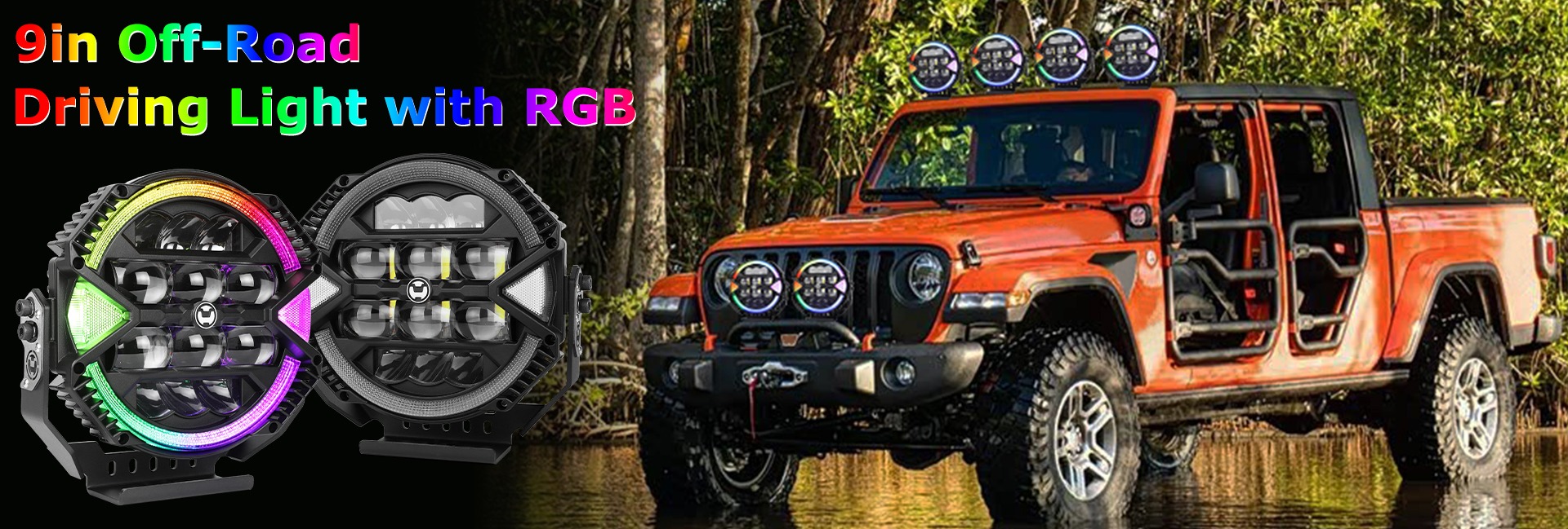 OVOVS-Luz LED redonda de 9 pulgadas RGB para todoterreno, luz de conducción LED de 148W con alto/bajo brillo RGB Halo DRL para camión SUV UTV Pickup